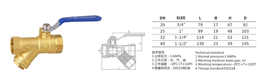 產品名稱:黃銅過濾器球閥 產品型號:YX8719 查看次數: